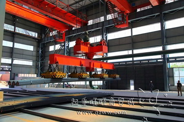 適用于冶金工廠在室內或露天的固定跨間較繁重地裝卸及搬運具有磁性的黑色金屬制品與材料(如鋼錠、型鋼、生鐵塊)在機械廠、庫房中也常用來搬運鋼料、鐵塊、廢鐵、廢鋼、鐵屑等物料。