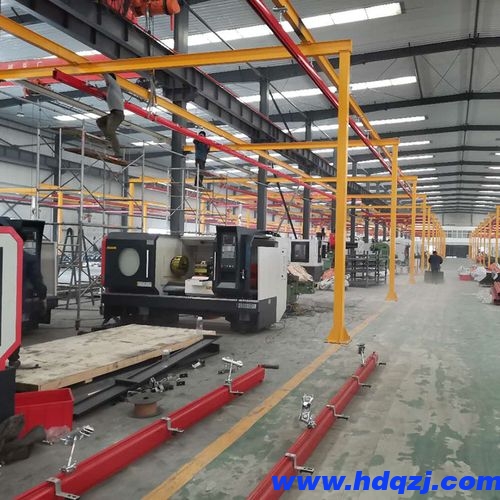 KBK柔性組合懸掛起重機的電源可以由傳統的扁平電纜或滑動觸線內置于軌道內。內置滑動觸線不僅提高了起重機的環境適用能力,使起重機外觀更j簡潔美觀,還可以使起重機實現軌道、跨越、跨越、形成全自動復雜的材料輸送系統。