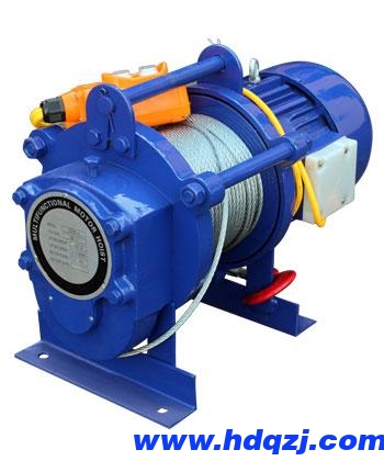 提升機構由提升電動機、減速器、卷筒、制動器等組成。提升電動機經聯軸器、制動輪與減速器連接,減速器的輸出軸與纏繞鋼絲繩的卷筒相連接,鋼絲繩的另一端裝吊鉤,當卷筒轉動時,吊鉤就隨鋼絲繩在卷筒上的纏繞或放開而上升或下降。