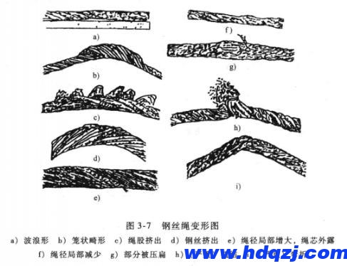 7)部分被壓扁(見圖3-7g),這是由于機械事故造成的,嚴重時鋼絲繩應報廢。